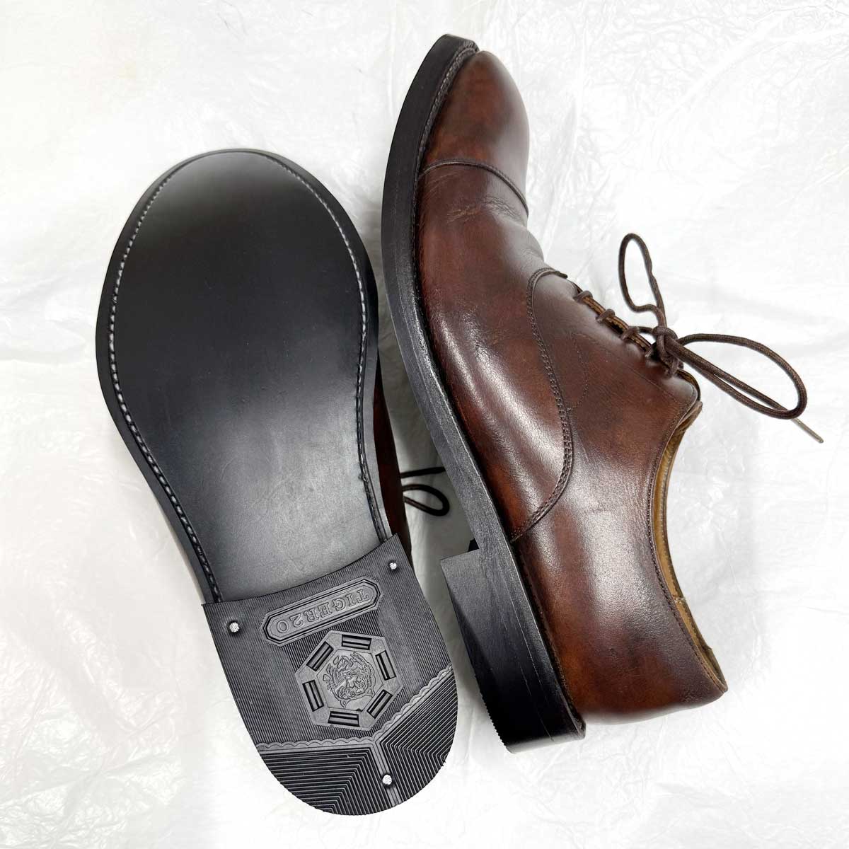 オールソールとは、靴底全体を新品に交換する修理方法。摩耗してすり減った靴底を張り替えることで、履き慣れた靴のフィット感や機能を新品同様に蘇らせることができます。